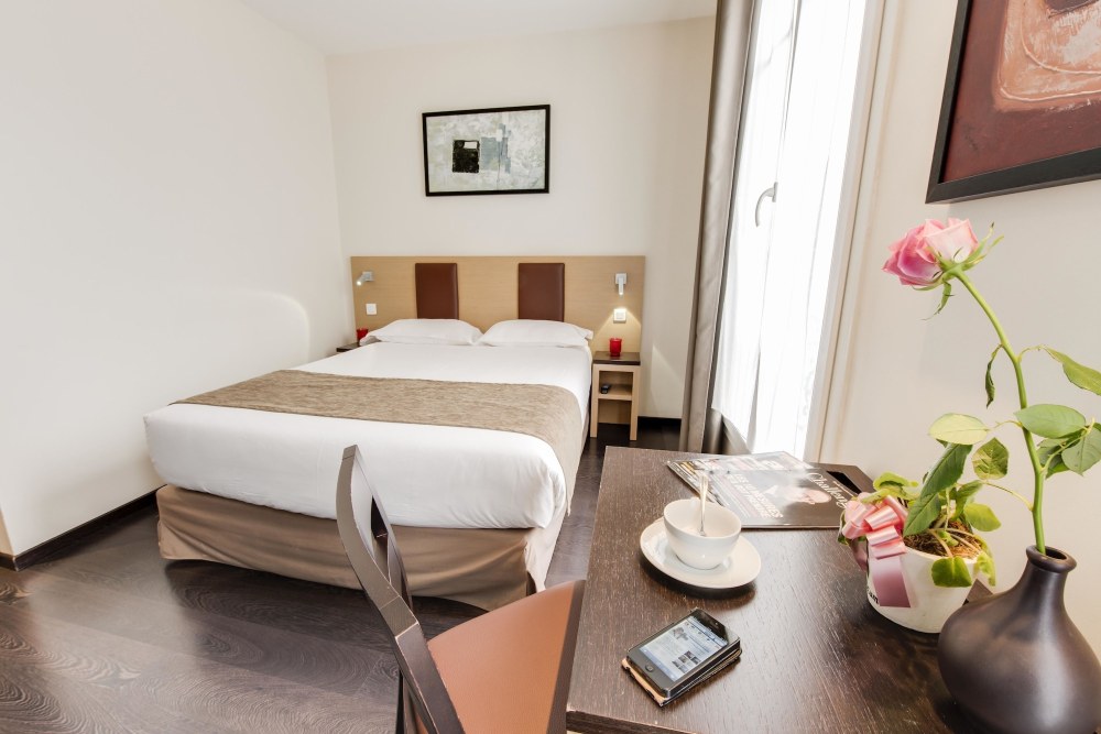 Located in Paris (17th Arrondissement), Source Hotel is within a 10-minute drive of Stade de France and Arc de Triomphe. This hotel is 3.3 mi (5.3 km) from Champs-Élysées and 3.3 mi (5.3 km) from Palais Garnier.Make use of convenient amenities such as complimentary wireless internet access, concierge services, and a vending machine.Buffet breakfasts are available daily from 7 AM to 10:30 AM for a fee.Featured amenities include a computer station, complimentary newspapers in the lobby, and a 24-hour front desk. Self parking (subject to charges) is available onsite.Stay in one of 34 guestrooms featuring LED televisions. Complimentary wireless internet access keeps you connected, and satellite programming is available for your entertainment. Private bathrooms with showers feature complimentary toiletries and hair dryers. Conveniences include phones, as well as laptop-compatible safes and desks.